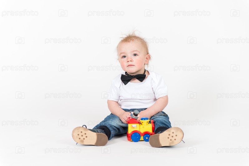 Маленький мальчик с игрушечным поездом
