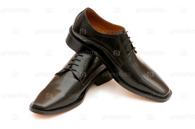 Черные мужские туфли, на белом фоне