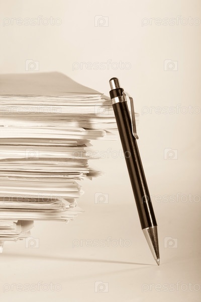 Ручка и стопка бумаги