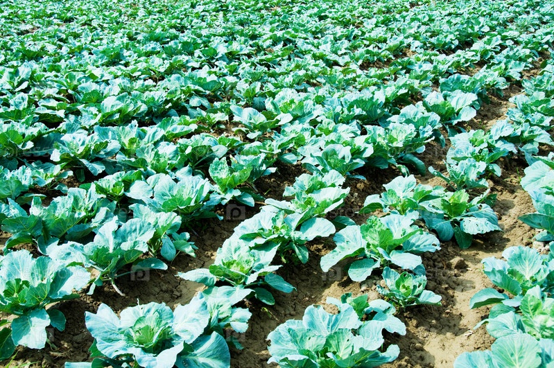 Поле с рядами растущей капусты