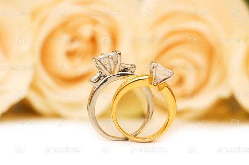 Розы и обручальные кольца крупным планом