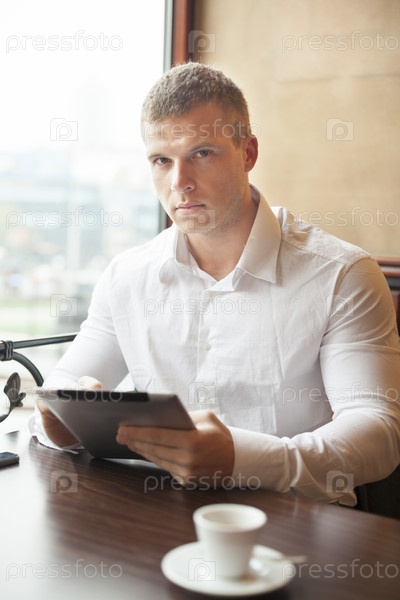 Серъезный мужчина на кофе-брейке в ресторане