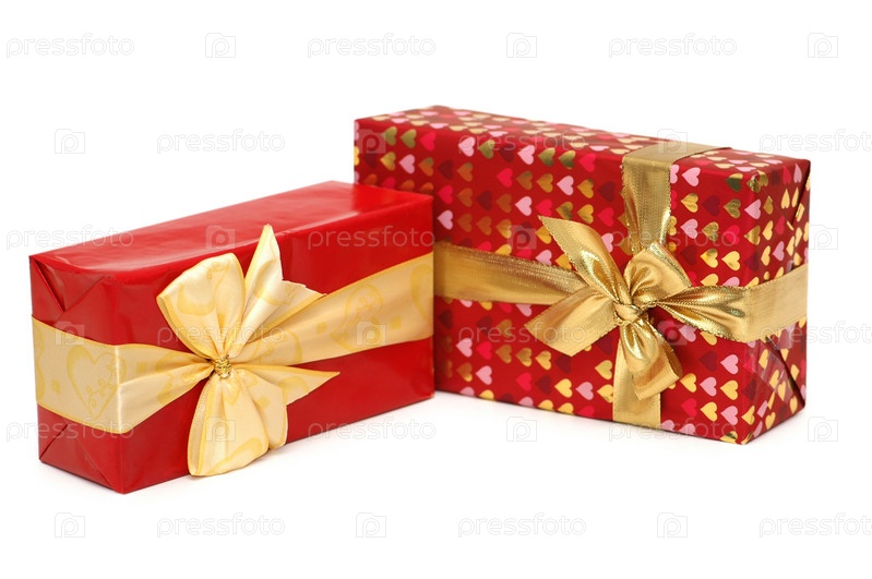 Цветные подарочные коробки на белом фоне