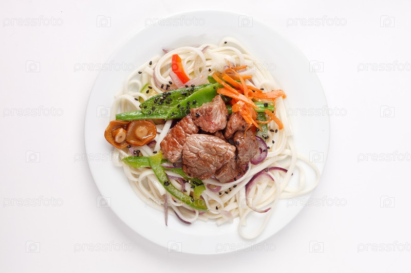 Мясо с овощами и лапшой