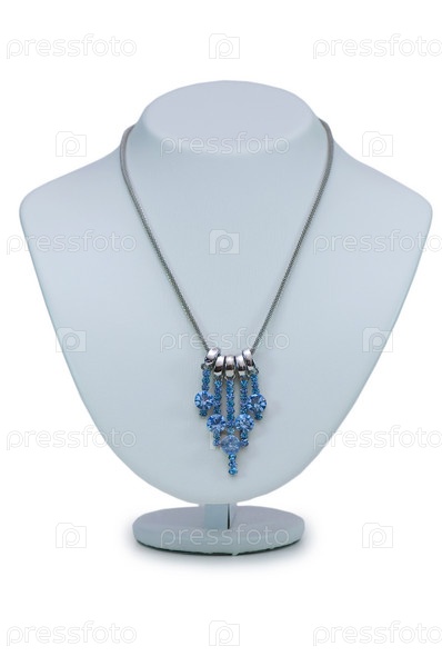 Бриллиантовое ожерелье на манекене на белом фоне