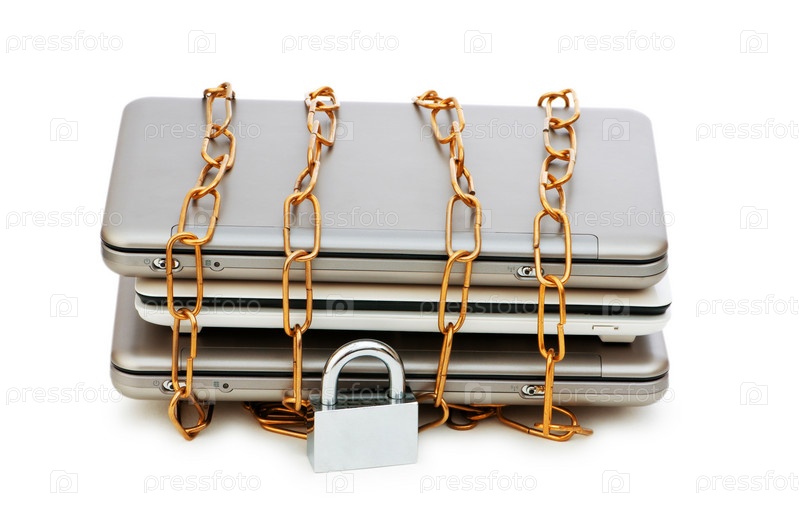 Концепция компьютерной безопасности с ноутбуком и цепью