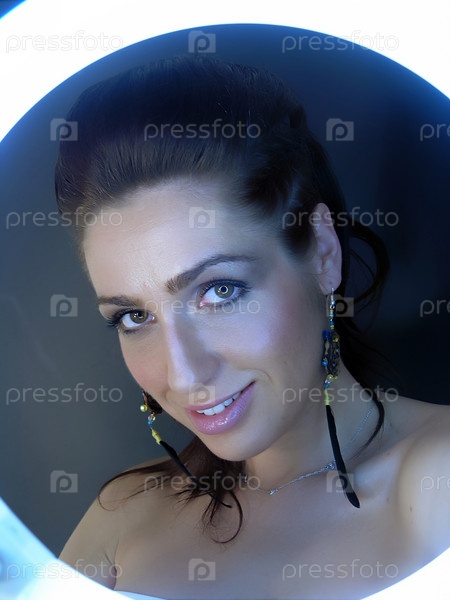 Женщина за светящимся кругом