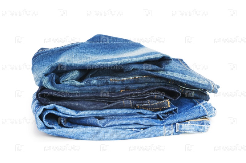 Пара сложенных джинсов на белом фоне