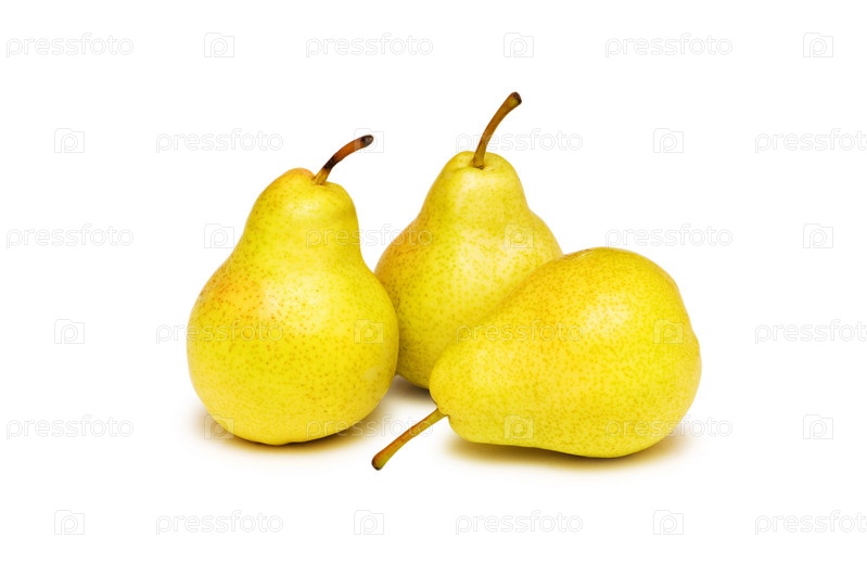 Три желтые груши на белом фоне