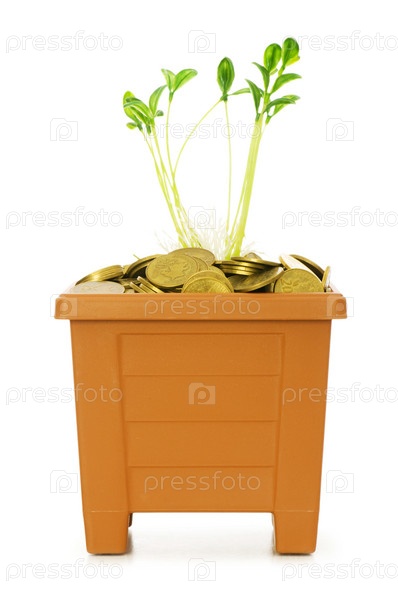 Зеленый рассадник, растущий из кучи монет