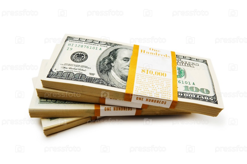 Доллары в пачках на белом фоне