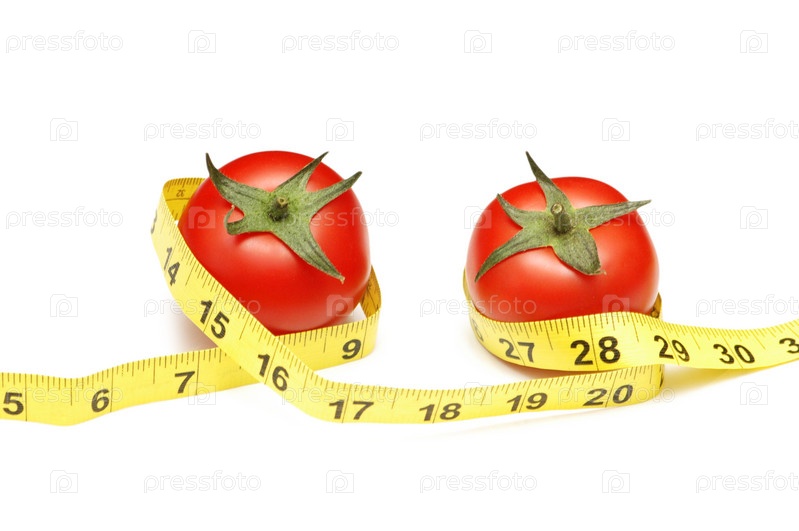 Два томата с сантиметром на белом фоне