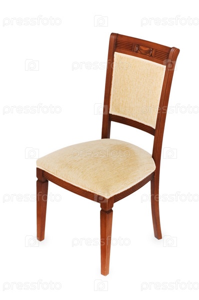 Деревянный стул с мягкой обивкой на белом фоне