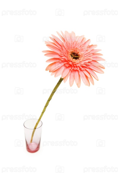 Гербера в стакане на белом фоне