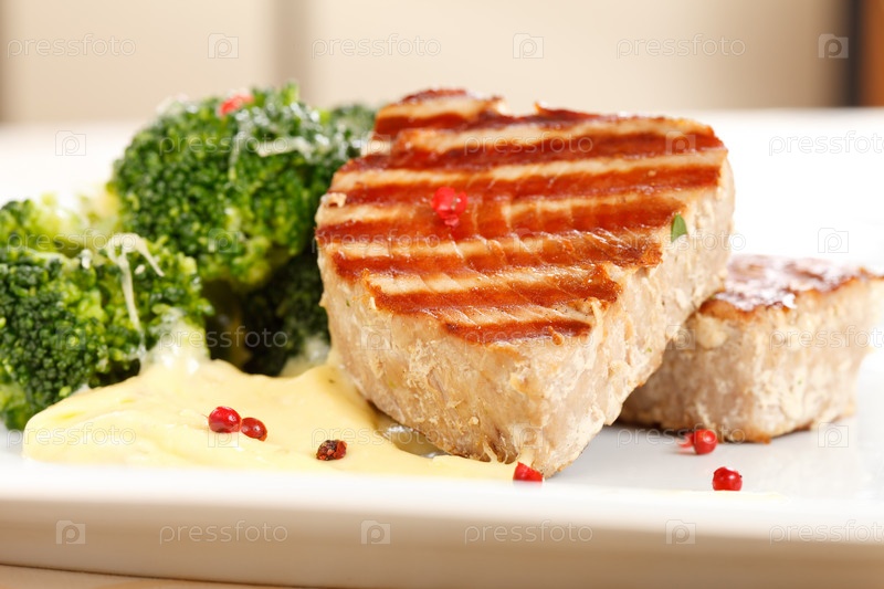 Стейк из тунца с брокколи