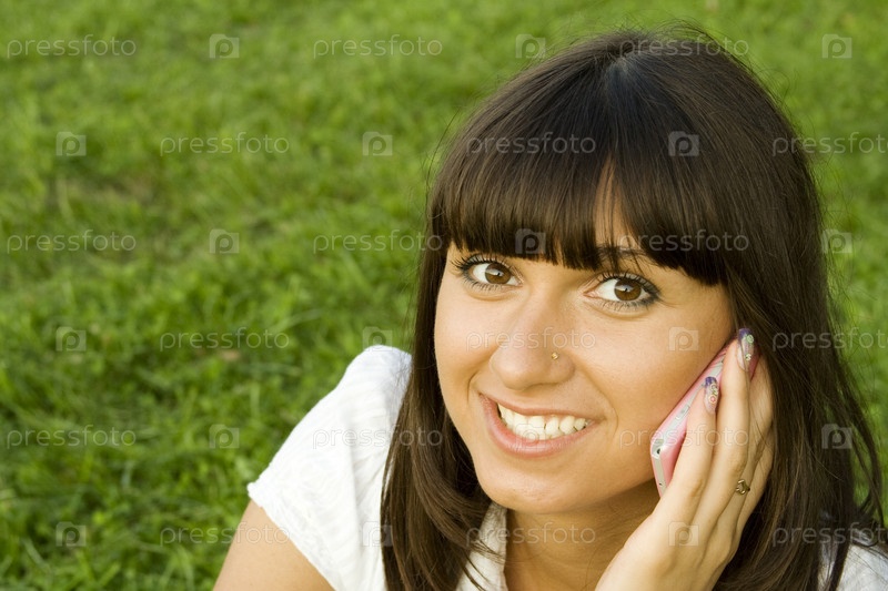 Девушка с мобильным телефоном в парке