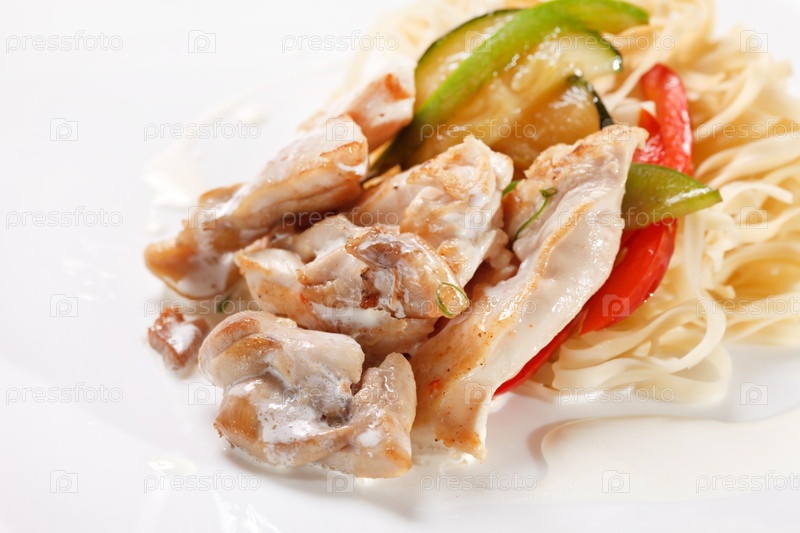 Мясо с лапшой и овощами