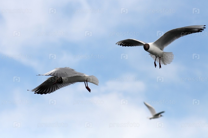 Чайки на фоне неба. Лето, город