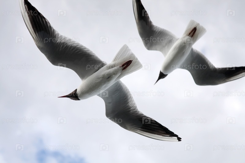 Чайки на фоне неба. Лето, город
