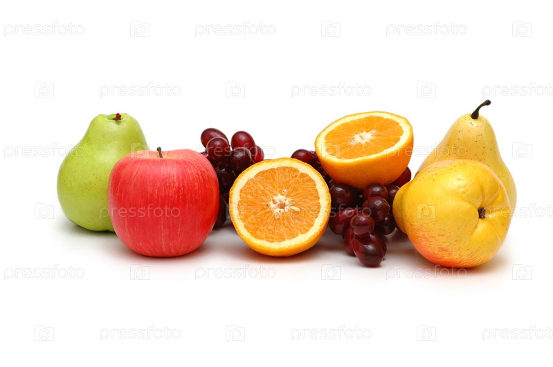 Фруктовое ассорти на белом фоне