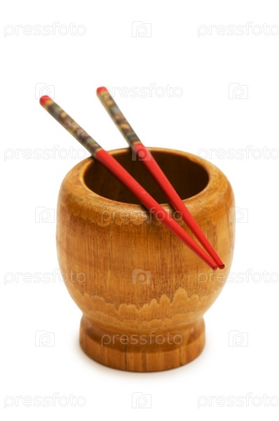 Палочки для суши и чаша на белом фоне