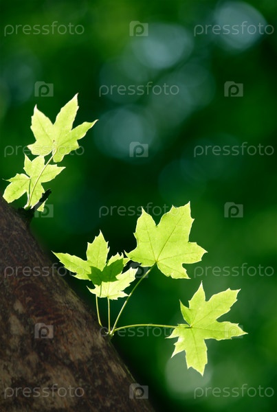 Зеленые листья клена в весенний день