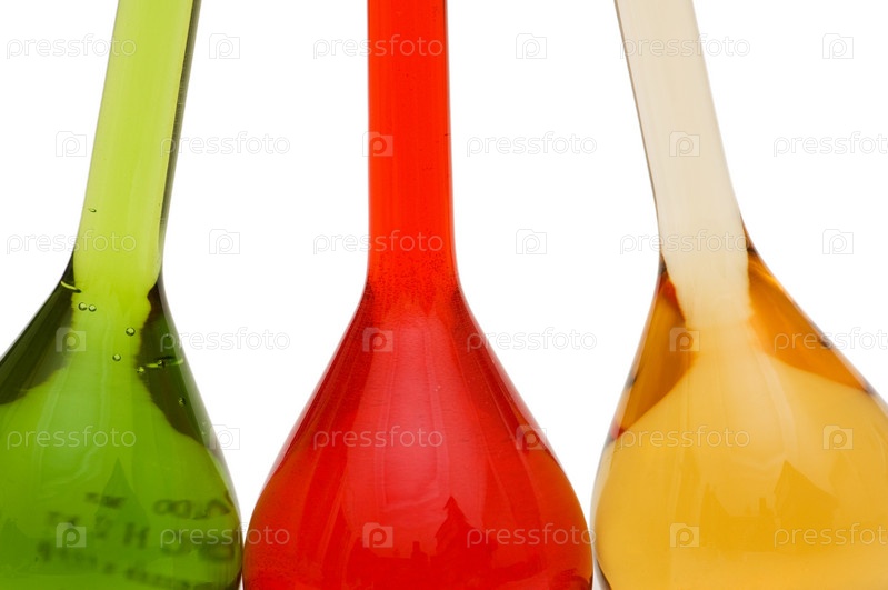 Разноцветные колбы на белом фоне