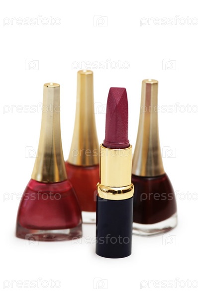 Лак для ногтей и помада на белом фоне