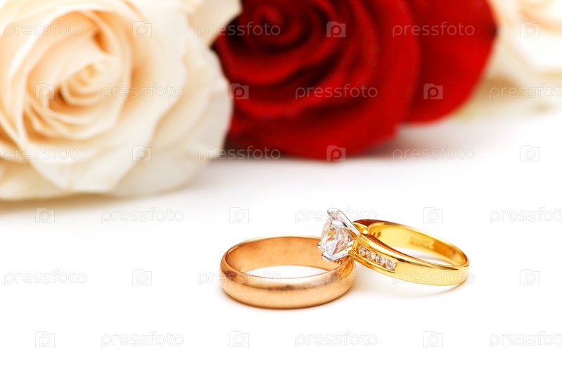 Обручальные кольца на фоне роз
