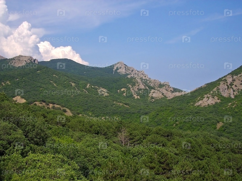 Горы на юге Крыма покрытый зеленым лесом