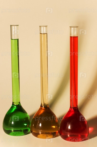 Три разноцветные колбы крупным планом