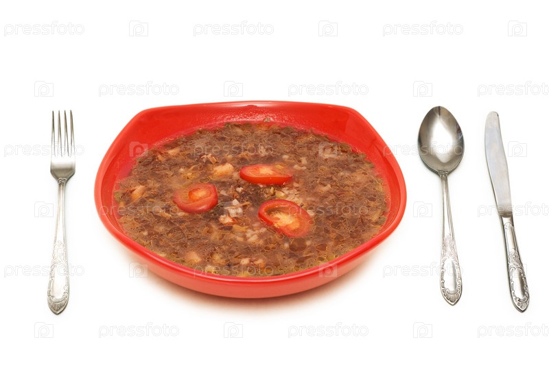 Тарелка супа на белом фоне
