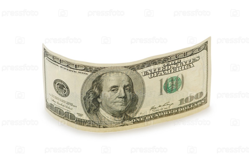 Сто долларов США на белом фоне