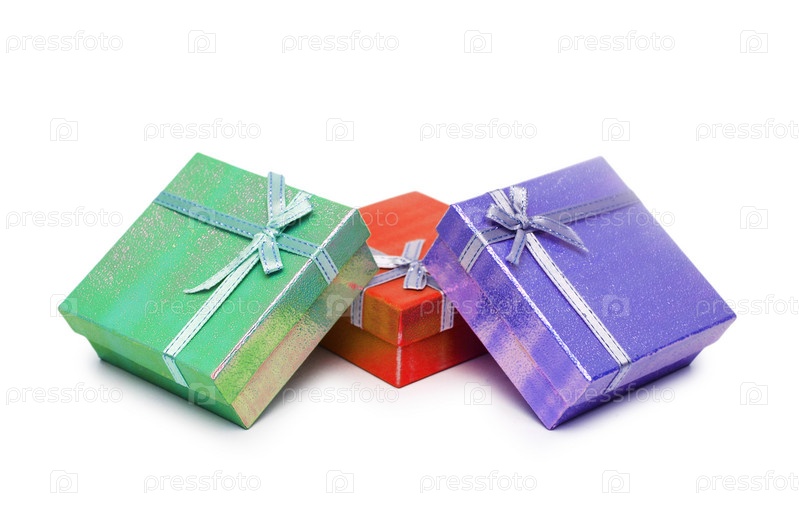 Подарочные коробки на белом фоне