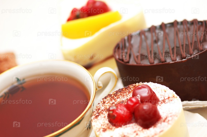 Чай со сладостями крупным планом