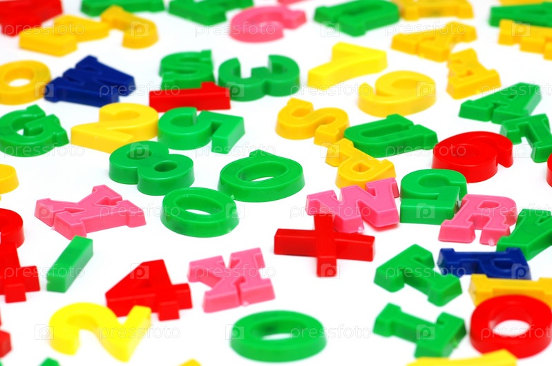 Различные цветные буквы и цифры на белом фоне