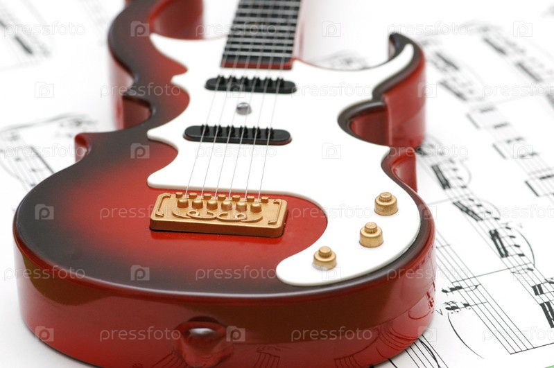 Гитара на нотном листе крупным планом