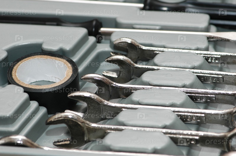 Набор гаечных ключей крупным планом
