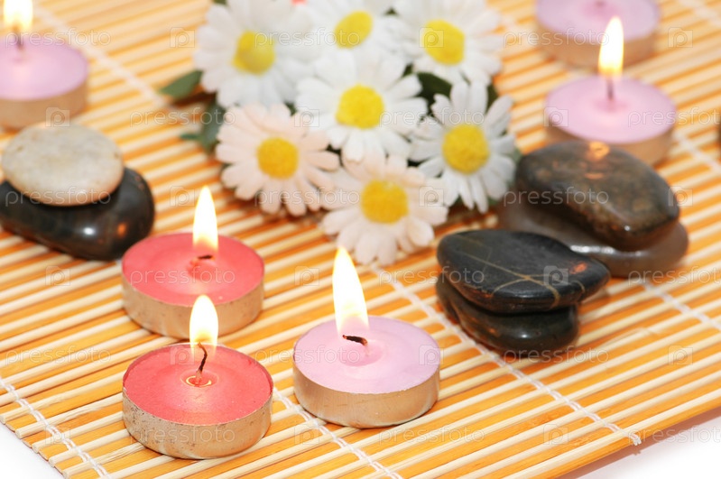 Ароматизированные свечи с цветами и галькой
