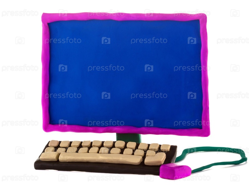 Компьютер из пластилина на белом фоне