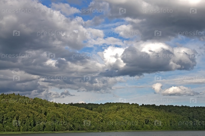 Облачное небо над густым лесом