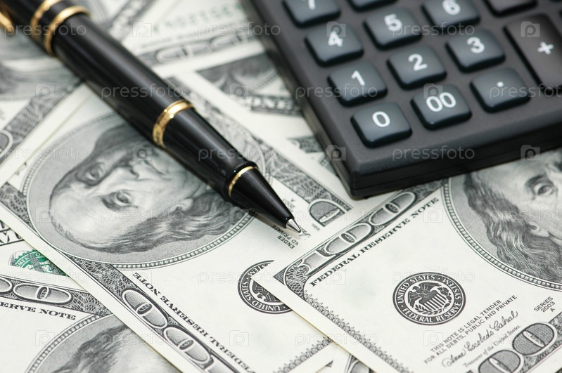 Калькулятор и ручка поверх долларов