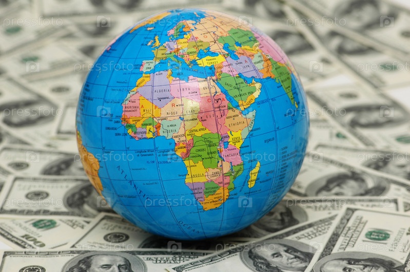 Глобус земли поверх американских долларов