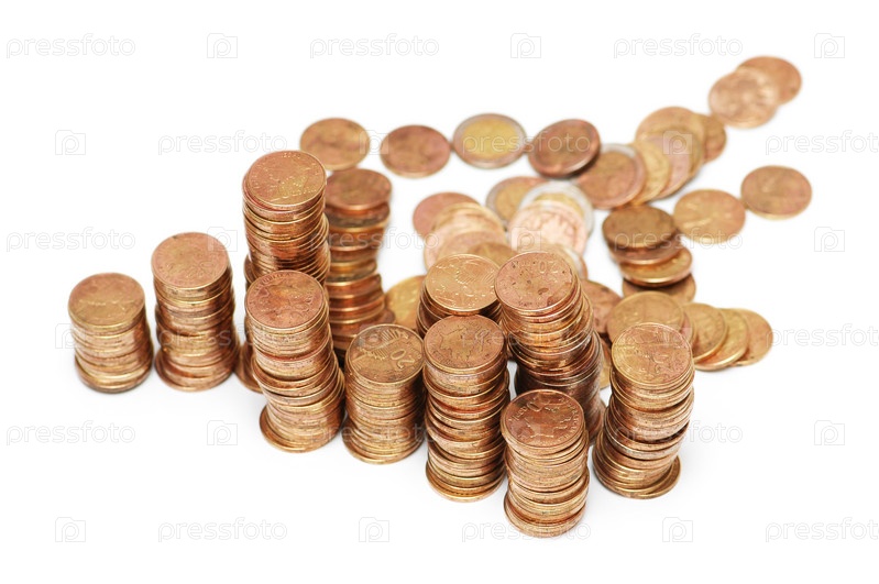 Стопки монет на белом фоне