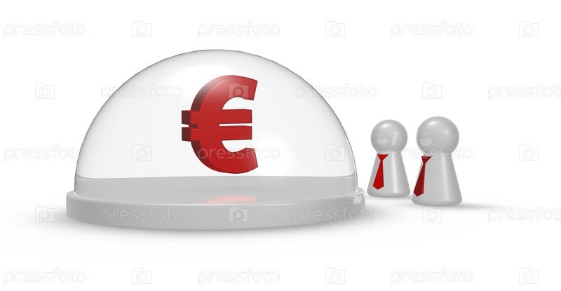 Фигуры с галстуками и символом евро под стеклянным куполом - 3d иллюстрация
