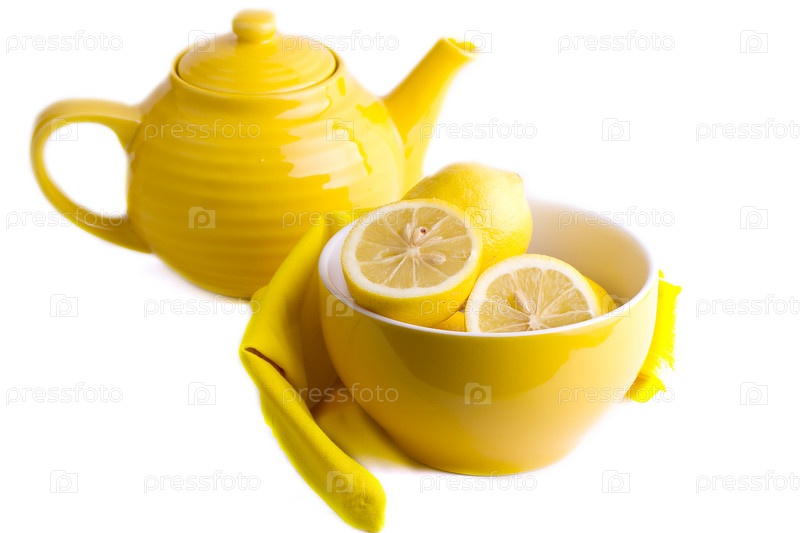 Желтый лимон в тарелке