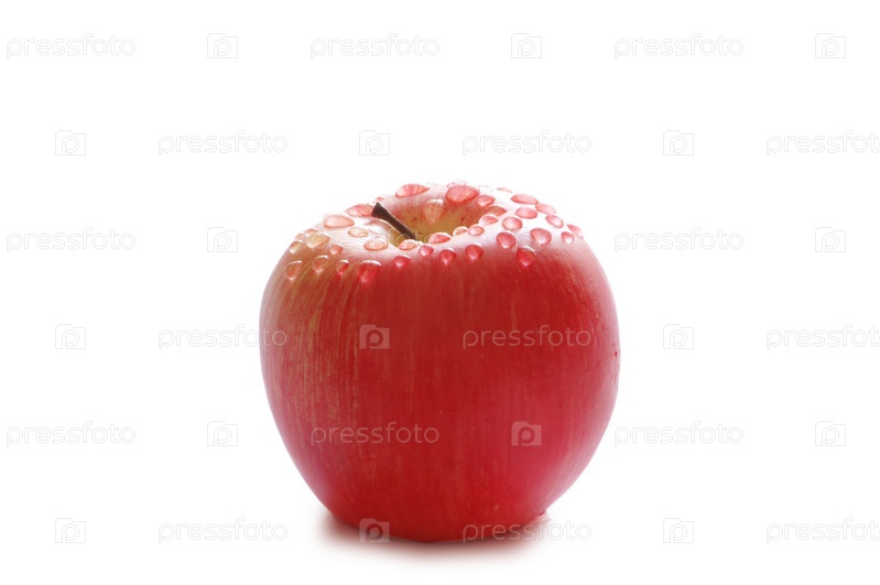 Красное яблоко с каплями воды