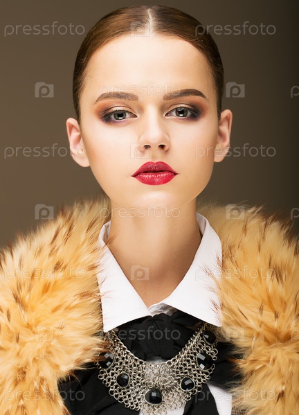 Гламур. Портрет гордой модной женщины в меховом воротнике