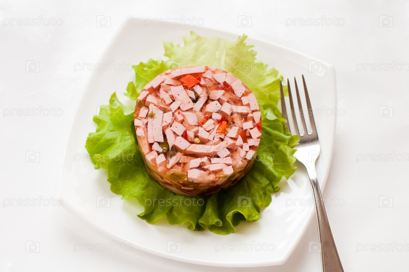 Заливное из колбасы с овощами