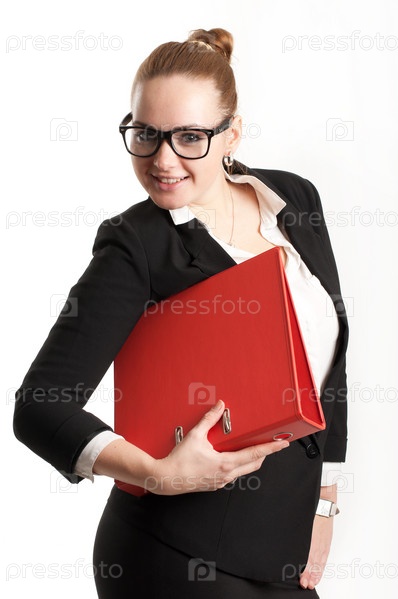 Деловая женщина с папками на светлом фоне